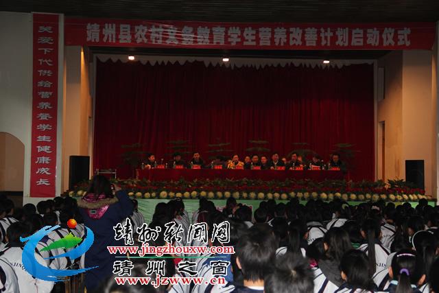 靖州新闻网讯(记者 肖平 宋崇岭)3月1日上午10:30,靖州县农村义务教育学生营养改善计划在横江桥中学正式启动。启动仪式由县人民政府副县长李彬主持。县委常委、常务副县长杨秀芳,县委常委、县委宣传部部长戈承艳及县政府办、县义务教育学生营养计划领导小组、县教育局、横江桥乡党政领导,学生营养餐供应负责人,横江桥中学全体师生共400余人参加了启动仪式。