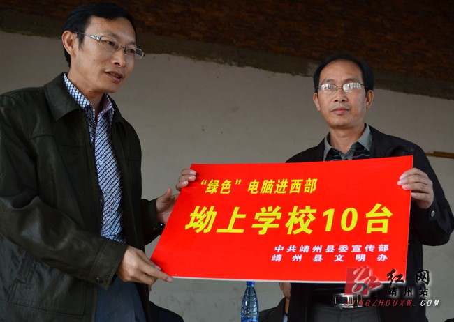 靖州新闻网•红网靖州站讯(分站记者 龙本亮 通讯员 郭超凡 吴才国) 9月18日上午,靖州县在坳上学校举行“绿色电脑进西部”活动赠送仪式。县委宣传部副部长黄成良、县文明办主任覃小欢以及县教育局电教站、坳上镇政府、学校的负责人参加了赠送仪式。