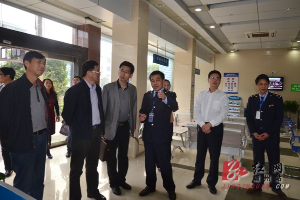 县国税局的办公区与生活区连成一体,在这个被称为“翠园”的小区内,绿树成荫,环境优雅,摆放有序的车辆、错落有致的家属楼、红花与绿叶相互映衬的绿化带,以及墙上随处可见的文明标语,浓浓的文明创建气息扑面而来。姚伟红一行边走边看,当来到办税大厅时,全职能窗口和一站式服务所体现出的人文关怀,给姚伟红一行留下了深刻的印象。