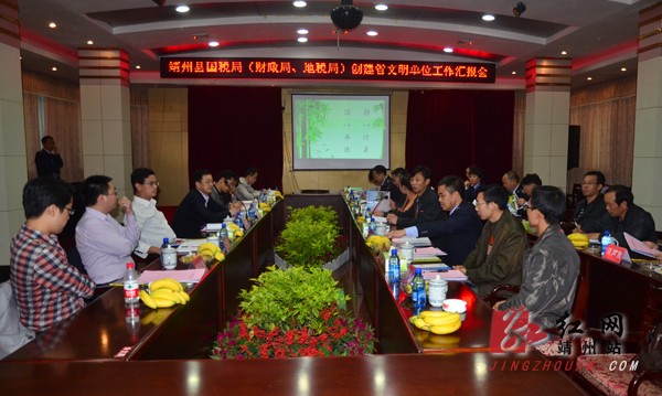 在观看了《文明之花别样红》的汇报片后,县国税、财政、地税三家单位先后汇报了各自创建省文明单位工作情况。