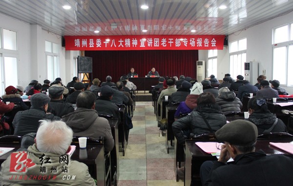 靖州新闻网·红网靖州站讯(分站记者 肖平)1月15日上午9点,“学习贯彻党的十八大精神,加快科学发展富民强乡进程”专题报告会在县委老干部局举行,县离退休老干部、老年大学校委会成员和县委老干部局全体领导干部职工共100余人参加宣讲会。宣讲活动由靖州县委宣传部副部长黄成良主讲,县委组织部副部长、老干部局局长吴细根主持宣讲活动。