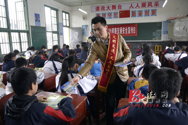 靖州新闻网·红网靖州站讯(通讯员 谢真燕 龙章辉)3月25日,靖州三中学教师宣讲员唐八一向学生宣讲交通安全知识。在全国中小学生安全教育日之际,靖州县教育局联合交警大队开展了“开心上学、安全回家”未成年人交通安全主题教育活动。