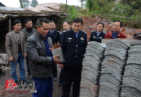商务局工作人员在大弯瓦厂检查瓦片质量 龙本亮 摄影