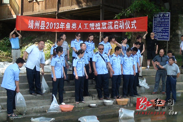 靖州新闻网·红网靖州站5月28日讯(通讯员 张红艳) 5月27日下午,靖州畜牧局会同渠阳镇相关工作人员,将30万尾鱼苗缓缓投放到“母亲河”渠江之中。