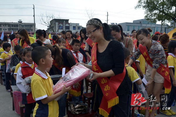 爱心妈妈给小朋友赠送书包 谢真燕 摄