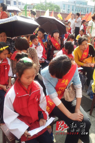 靖州新闻网·红网靖州站讯(通讯员 谢真燕 罗耀芝 潘秀丽) 5月31日上午,由靖州县妇联组织为全县农村留守儿童招募的第二批60名“爱心妈妈”在当天举行的“庆六一•爱心妈妈牵手留守儿童启动仪式”上与飞山小学67名留守儿童结成对子,开始履行自己“亲情关爱”的义务。