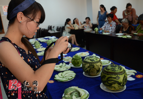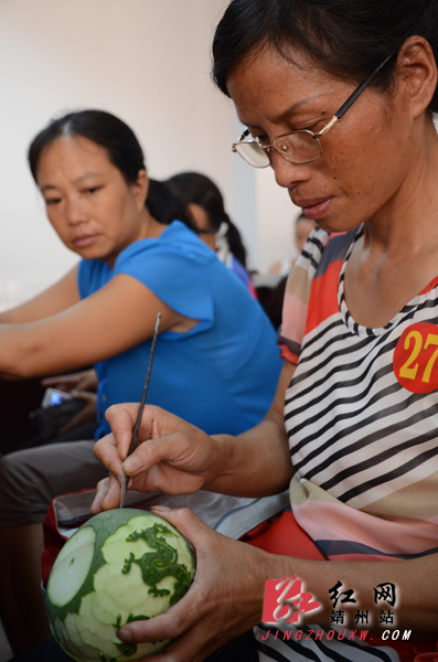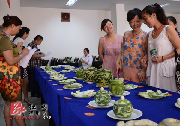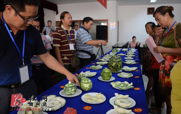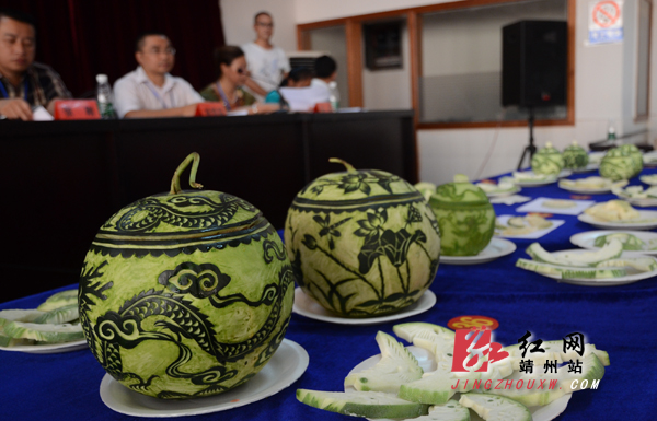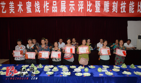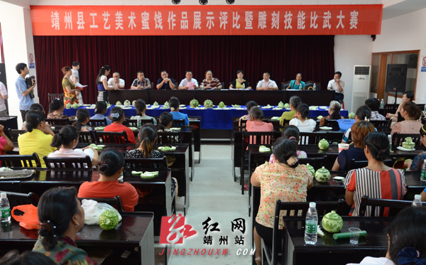 靖州新闻网·红网靖州站讯(记者龙本亮 刘杰华 通讯员张刚 李运军 吴燕)7月26日,靖州总工会、县城镇集体工业联社、靖州县工艺美术协会在县总工会二楼共同举办工艺美术蜜饯作品展暨雕刻技能比武大赛。靖州雕花蜜饯是美食文化与民族民间文化完美结合的民间艺术珍品,2009年被列为第二批省级非物质文化遗产项目。当天来自全县各地的60多名蜜饯雕刻好手展现了自己精美的工艺美术蜜饯作品,并现场参加雕刻技能比武大赛。经大赛评委精心评选,李开根获一等奖,张凤梅、罗宪梅、戴国凤获二等奖,胡昌晓、宁美顺、田家桂、储吉花、田多英获三等奖。