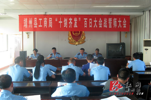 靖州新闻网·红网靖州站讯(通讯员 杨柠宇)8月5日上午,靖州县工商局召开“十剑齐发”百日大会战誓师大会,动员部署百日大会战工作任务,全局干部职工参加会议。