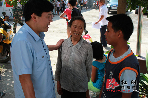 靖州新闻网·红网靖州站讯(通讯员 张帆)8月6日,靖州县人民法院常务副院长周世林带领法院工作人员一行,看望慰问了该县寨牙乡江口村团寨的火灾村民,送上5000元慰问金,更送去了法院及整个社会的关心。