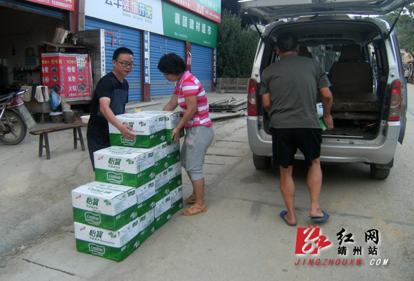 靖州新闻网·红网靖州站讯(通讯员 杨国凤)8月7日傍晚,藕团乡民政办购买了18件矿泉水、挨家挨户到三桥村一组送水解决饮水问题。藕团乡三桥村一组观音洼,全组18户,90余人,全部的生活用水和饮用水只靠村口的1口水井供应,但连续的干旱天气导致水井一天只能出几桶水,有的村民半夜3点就起来抢水。根据这一情况,该乡乡长杨翰林当场表示只要旱情持续,还会想办法继续送去更多的水解决人畜饮水问题。