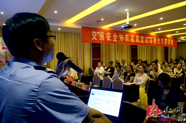 靖州县交警大队工会主席李建成在讲座 刘杰华 摄