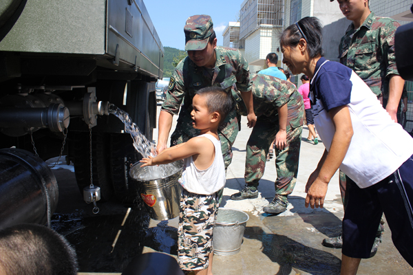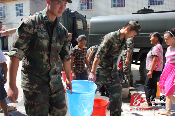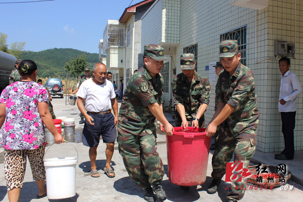 靖州新闻网·红网靖州站讯(记者 覃雪莲 通讯员 龙俊霓) 8月11日,驻靖某部官兵将16吨救命水送到太阳坪乡诸葛村移民们家中,受到了当地群众的热情赞誉。