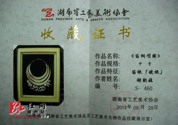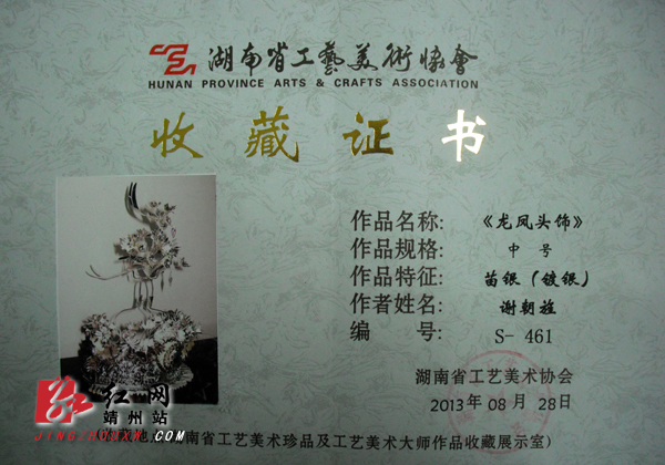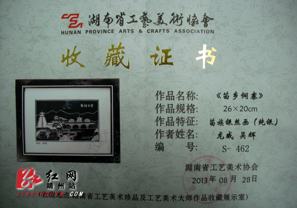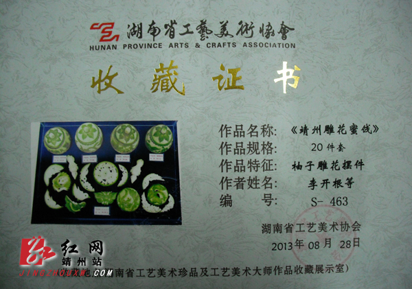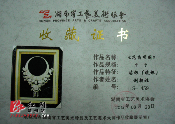 靖州新闻网·红网靖州站讯(通讯员 陈金翠)8月28日,由县城镇集体工业联社、县工艺美术协会选送的靖州县工艺美术精品、珍品获省工艺美术协会永久性收藏。