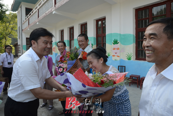 县委书记钦代寿向教师献花 龙本亮 摄影