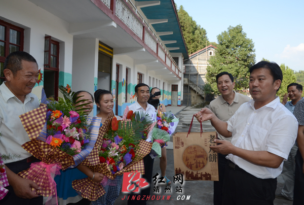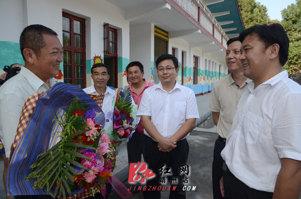 靖州新闻网·红网靖州站讯(记者 龙本亮 通讯员 陆益秀、尹明厚)9月10日,靖州县委书记钦代寿来到靖州大堡子镇岩湾小学,看望慰问教师,并以此向全县广大教师致以节日的问候。对不远千里来到靖州岩湾小学义务支教的贝华老师,钦代寿说:“贝老师远离家乡、远离都市,深入边远民族地区义务支教,精神可贵、让人感动。”