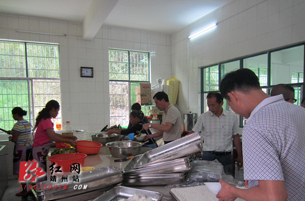 午餐时,龙宪周一行在文溪学校黄昌江校长的陪同来到学校食堂,仔细检查了食堂的环境卫生和安全生产情况,并认真询问了食堂工作人员相关情况,察看了饭菜供应品种、质量,然后盛上饭菜进行简单的工作午餐。龙宪周对文溪学校的食堂工作和学生营养餐工作给予了肯定,同时向同行的学校领导指出:“食堂要注意饭菜的质量、品种、营养等细节问题,从细节处入手把学校食堂办好,努力做好学生营养餐工作,力求让孩子们吃得放心、吃得舒心。同时要加强对食堂的日常管理,确保师生卫生就餐,健康就餐,文明就餐”。