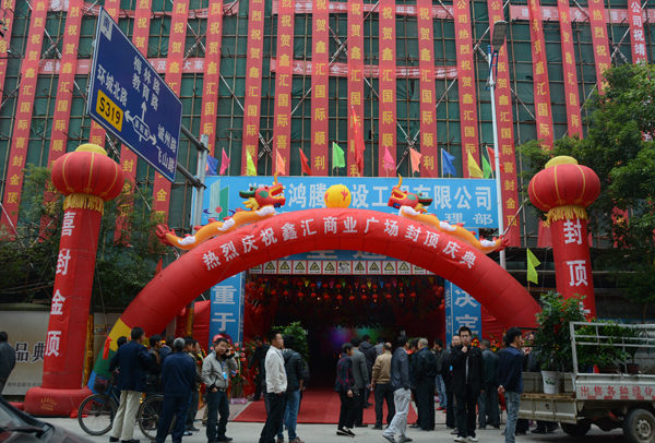 靖州新闻网·红网靖州站10月29日讯(记者 龙本亮 通讯员 王璨 ) 10月28日上午,鑫汇国际商业广场举行封顶仪式,这标志着靖州城市建设又将增加新的亮点。