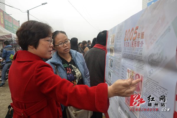 通过宣传展板,市民学习辨识真假币。 覃雪莲 摄