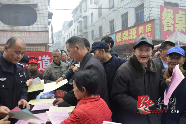 靖州新闻网·红网靖州站讯(记者 覃雪莲 通讯员 李全义)11月7日上午,靖州县玉麟庵市场管委会,梅林社区、梅林社区警务室,以及靖州人民银行联合发起防扒、防盗、防假钞宣传活动。该活动现场,通过发放宣传资料、现场讲解、宣传展板等方式,向广大市民详细讲解了防扒、防盗、防假钞的相关知识,该活动深受广大市民欢迎和喜爱。