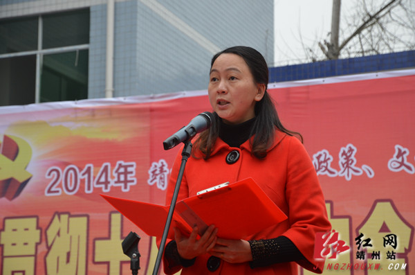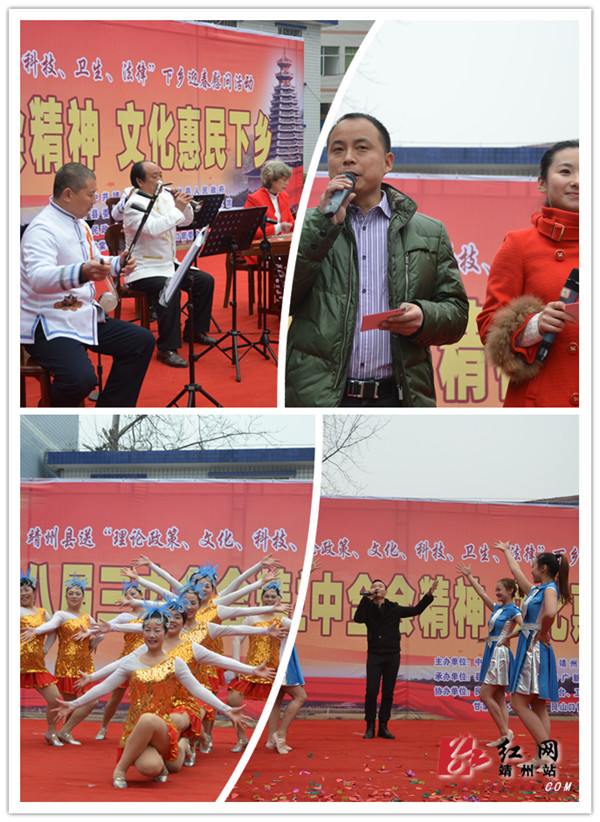 靖州新闻网·红网靖州站讯(记者 陈俊名 通讯员 胡兰 杨娟) 1月6日上午,靖州县2014年送理论政策、送文化、送科技、送卫生、送法律“五下乡”迎春慰问活动在甘棠镇启动,县委常委、宣传部长戈承艳出席活动并致辞,副县长邓利芳主持启动仪式,县人大常委会副主任石逢英,县政协副主席禹容娥等领导出席活动。