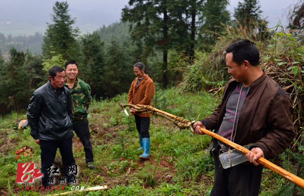 靖州新闻网•红网靖州站4月8日讯(分站记者 龙本亮 刘杰华) 4月7日,靖州苗族侗族自治县新厂镇和平村,在简单的祭祀仪式后,一棵粗壮的杉木随着喜庆的鞭炮声应声而倒。由靖州籍旅法油画艺术家、湖南大学设计艺术学院教师杨代习发起的“侗乡中国梦”大型公益艺术展当日“祭山开斧”正式启动。按活动规划,一座最具侗民族特色的鼓楼将在这里取材建造后“移居”北京怀柔区国际乡村艺术馆。
