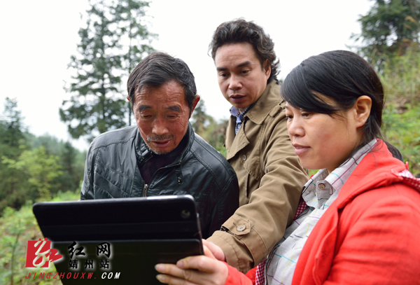 发起人杨代习向山主展示鼓楼建成后的效果图 龙本亮 摄影