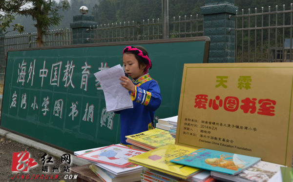 海外中国教育基金会是2001年4月在美国德克萨斯州注册的一个非盈利性组织,其唯一使命是筹集资金援助中国贫困地区的教育事业,十余年来,基金会先后在中国农村地区资助三万一千多人次的小学、初中生和逾三千四百多人次的高中生上学读书,以及五百多人次的贫困教师;帮助贫困地区学校建立了300余间图书室。这次为岩湾小学捐赠了价值4939元的图书285册。
