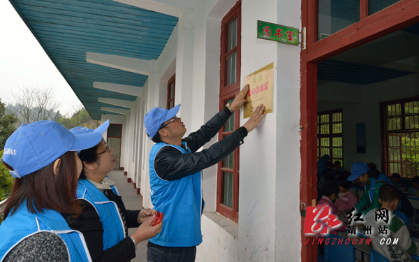 粘贴“天霖爱心图书室‘标牌 龙本亮 摄