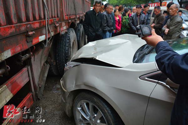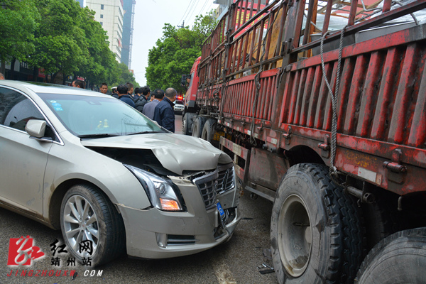 凯迪拉克轿车撞上大货车后停下 刘杰华 摄