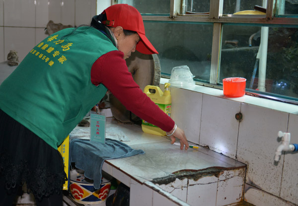 将药剂点注在灶台缝隙处 龙本亮 摄影