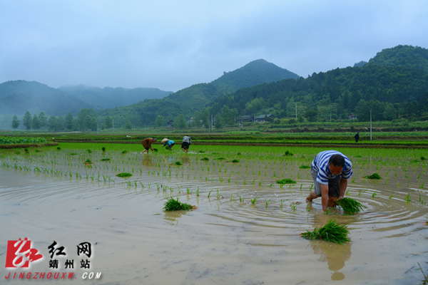 靖州新闻网·红网靖州站5月25日讯 ( 刘杰华 尹焱) 5月24日,走进靖州苗族侗族自治县新厂镇和平村,秧田里秧苗正绿,家家户户在田里忙忙碌碌,栽秧插田。“田把式”老扈告诉记者,“今年他的10多亩‘天水田’全部种上了优质稻,去年县财政局出钱把河坝和排灌渠都修好了,现在水旱都不愁了!”