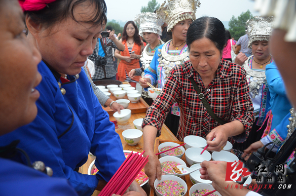 岩寨鼓楼近百米的合拢宴让不少游客们啧啧称奇,面对众多的美食,大家吃得酣畅淋漓。