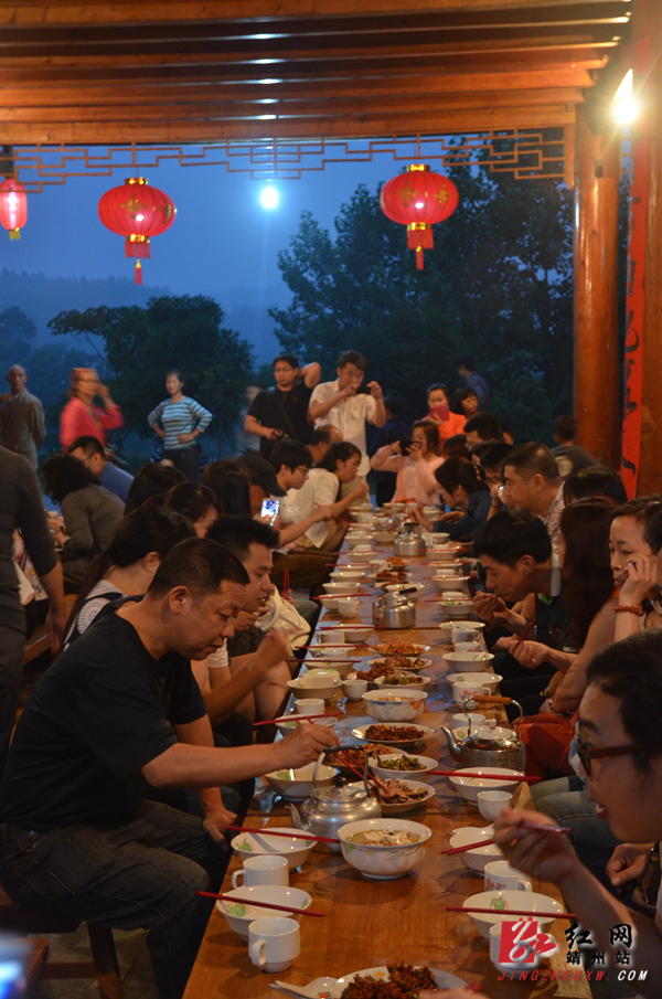 游客们正在享用合拢宴 陈俊名 摄