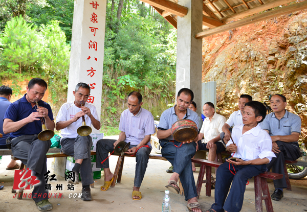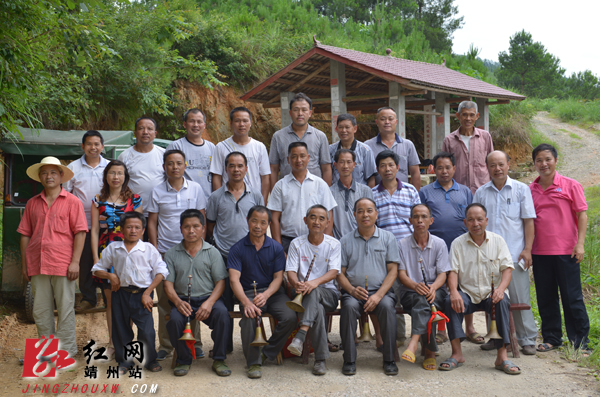 湘黔两省唢呐手在藕团乡康头村枪木当凉亭里交流技艺 龙本亮 摄