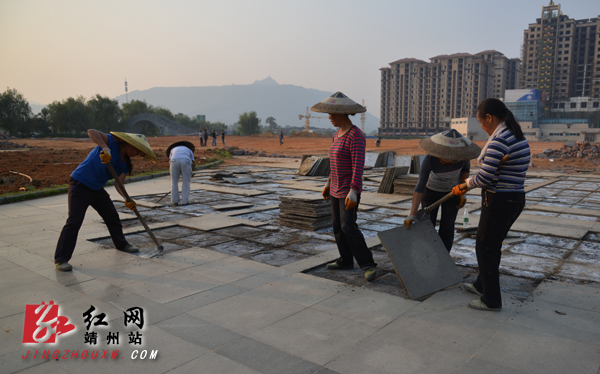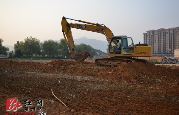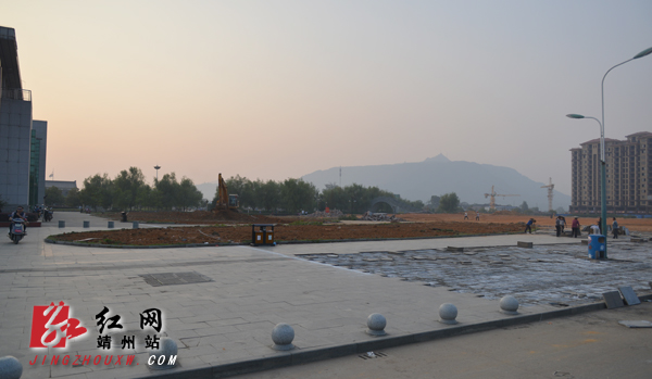 靖州新闻网•红网靖州站10月11日讯(记者 龙本亮)10月10日,靖州飞山民族广场建设工地民工正在拆除原有的人行道板,挖掘机在平整土地。广场场地土地平整已进入精准阶段。