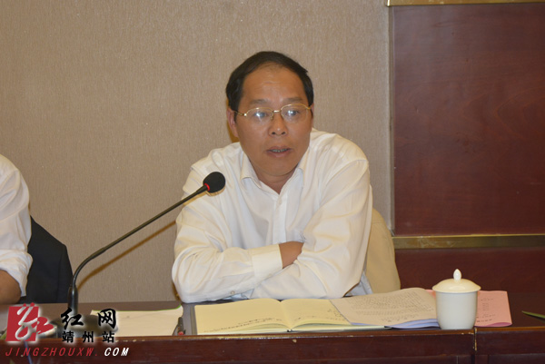 靖州县委书记钦代寿作汇报 陈时贵 摄