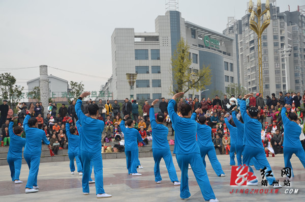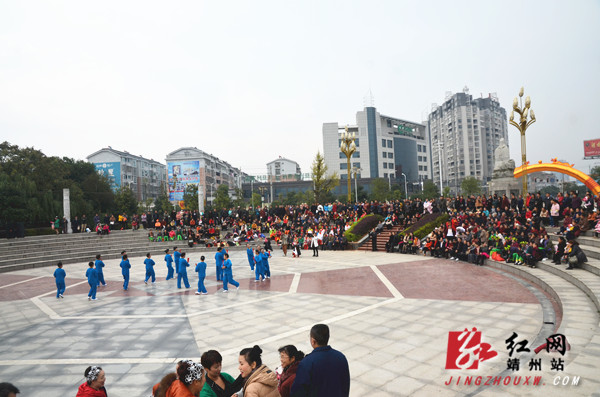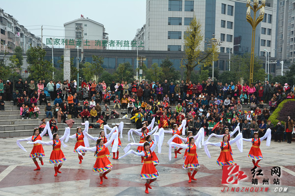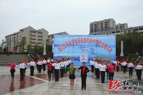 “靖州老年大学首届海洛斯净水器广场舞”文艺汇演吸引不少群众围观 陈俊名 摄