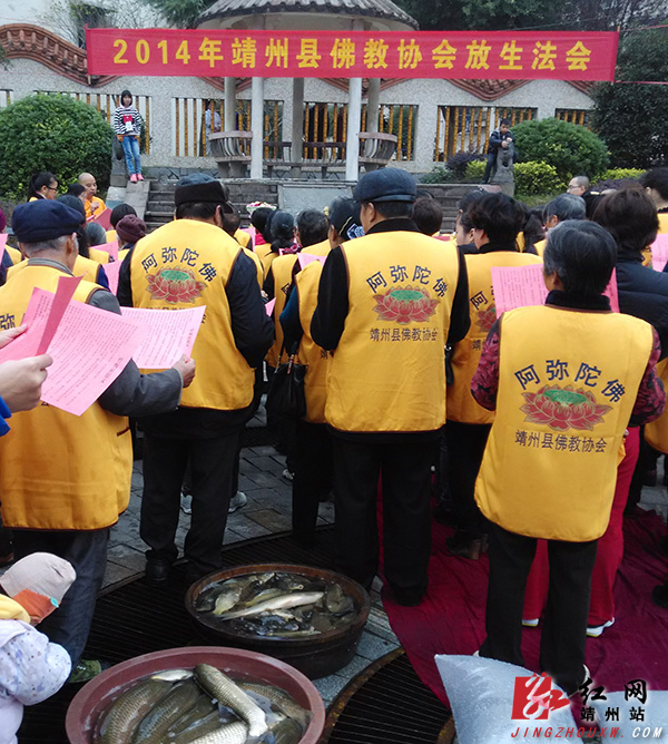 靖州新闻网·红网靖州站11月17日讯(通讯员 肖和胜)11月16日上午,靖州县佛教协会在望江楼举办放生法会,近300名四众弟子及众居士齐聚望江楼,法会放生生灵以鲫鱼、泥鳅、黄鳝、草鱼,龟类为主。