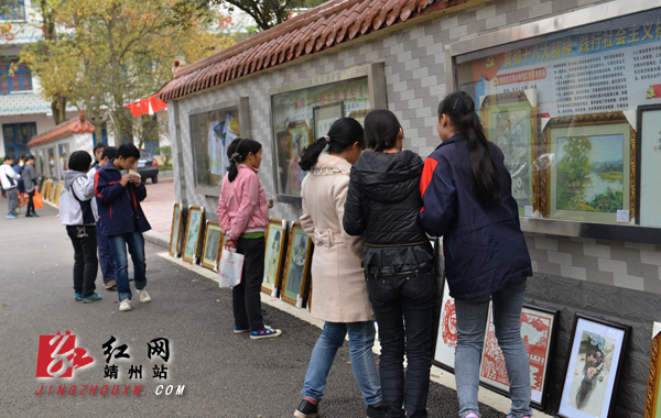 靖州新闻网•红网靖州站11月19日讯(龙本亮 黄秋凤)11月18日,在靖州二中的校园里,师生们在学生书法、绘画、手工作品前流连赏析。本次展览,共有20多名学生56幅作品参展。