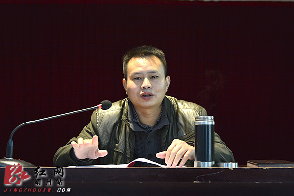 靖州县委老干部局党支部书记、副局长王权生讲课 陈时贵 摄