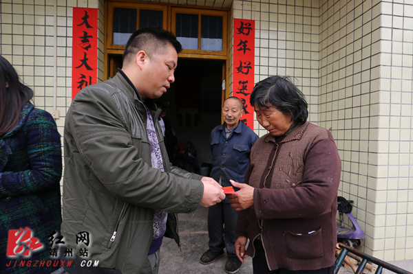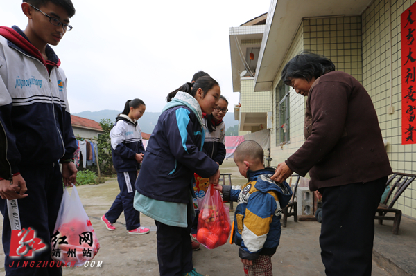 靖州一中德育处主任谢文强送上团员们的捐款 刘杰华 摄