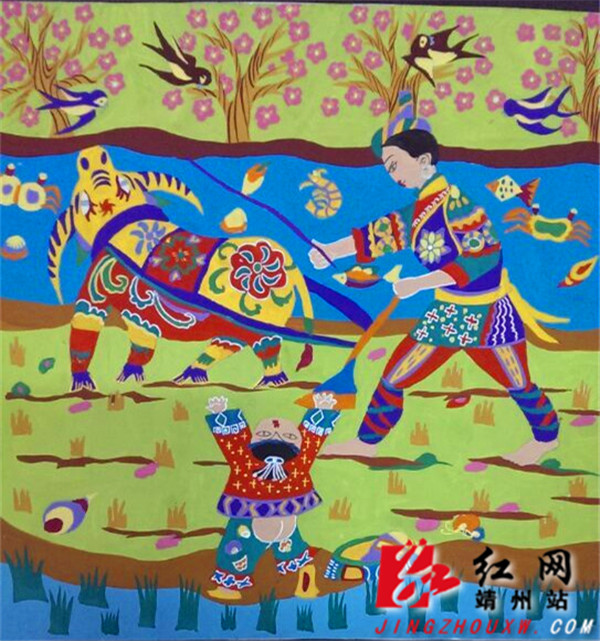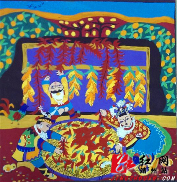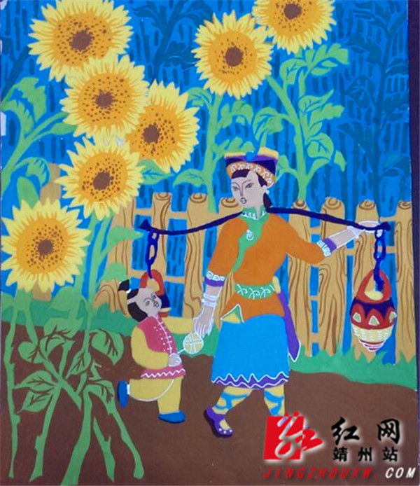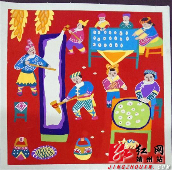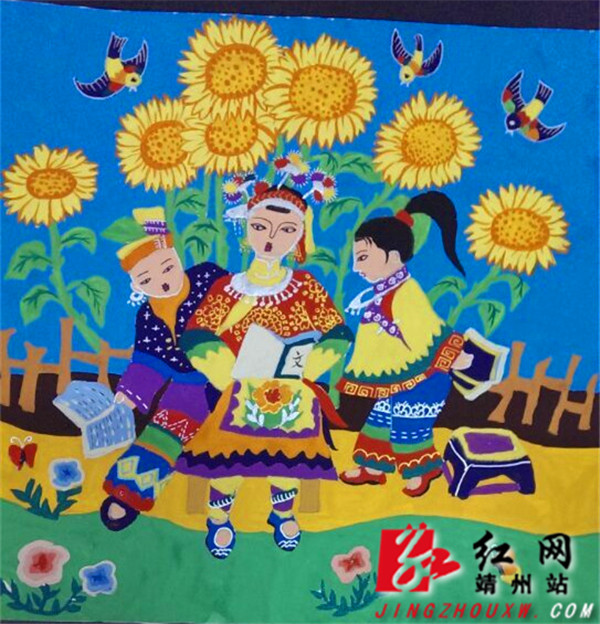 社会在发展,时代在进步,这为家乡的建设发展带来了很多的机遇,同时也给家乡民族文化的发展带来挑战:外出打工人员越来越多,民族歌谣的传唱、苗族织锦的传承面临后继无人,这让她心急如焚,于是从上大学开始她就开始调研靖州的苗侗文化。家乡岩湾歌场中最纯洁动听的歌声、苗族织锦里面的各种图腾,明艳的颜色搭配深深的打动了她,这些文化瑰宝都是无法复制的,同时也更加深了她对家乡的热爱。在外工作的她经常浏览靖州新闻网,从中找到更多的创作灵感,并创作了以家乡为元素的,一系列农民装饰画。她希望用自己行动为家乡的建设添砖加彩,同时也期望利用自己的平台,为靖州的民族文化传承与发展做出自己的贡献。