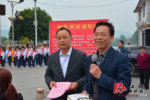 书籍是人类进步的阶梯,读书能够获取知识、增长才干、陶冶情操。活动中,工作人员还向参加活动的人员派发全民阅读倡议书。倡议广大干部职工率先垂范,以书为友,引领阅读风气。少一些浮躁喧嚣、多一些笔墨书香,为建设书香靖州、建设学习型党组织贡献自己的力量;倡议广大市民朋友多读书、读好书,不断提高思想道德素质和文化修养,营造浓厚的全民阅读氛围;还倡议青少年爱读书,善读书,继承中华民族优秀传统文化,培育和践行社会主义核心价值观,在读书中学习、成长、成才。