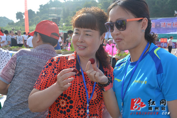 龚智超现身靖州杨梅节开幕式 与来宾品梅合影 陈俊名 摄