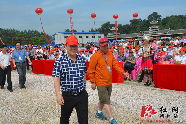 乐茂盛(左)王洪明(右)现身靖州杨梅节开幕式现场 陈俊名 摄