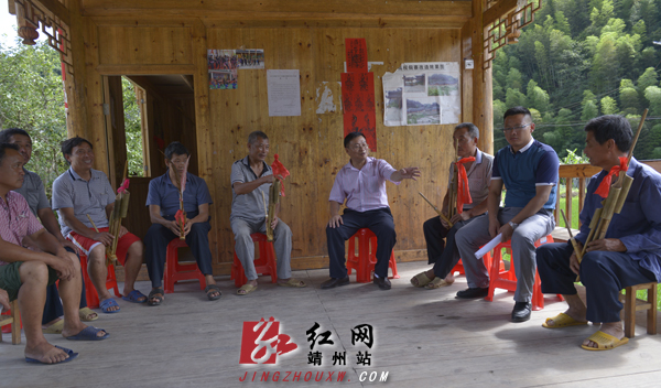 沙坝村高枧侗寨有50余户村民,200 余人,这里的侗寨男女人人能歌善舞,特别是民族乐器吹芦笙在当地及周边颇有名气,不仅经常参加县里举办的活动庆典还常到周边县市,省市区进行表演交流。在听了当地村民的吹芦笙表演后,杨秀芳就芦笙的传承、发展及表演形式与村民进行了探讨。杨秀芳建议当地的芦笙表演队应在表现形式,曲调上多做创新,要让游客能听得懂,同时还应具备较强的欣赏价值。