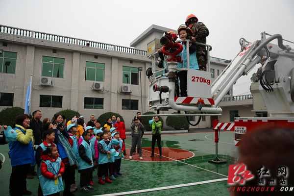 小朋友们登上了高射水消防车。 刘杰华 摄