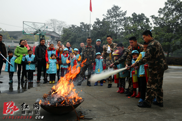 随后,消防员叔叔还手把手地教小朋友使用灭火器灭火,现场演示了液化气罐灭火方法,还教孩子们学唱消防儿歌。