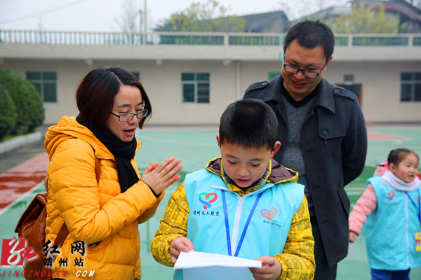 家长和孩子一起学习消防儿歌。 刘杰华 摄