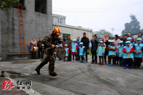 小朋友们还认真观看了登挂钩梯,行进中接消防水管等技能项目的表演,战士们娴熟的技术赢得了小朋友和家长们的阵阵掌声,小朋友都竖起大拇指喊“消防叔叔真厉害!”